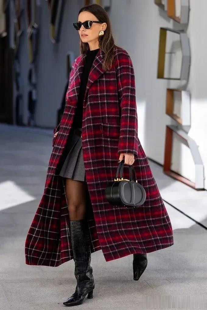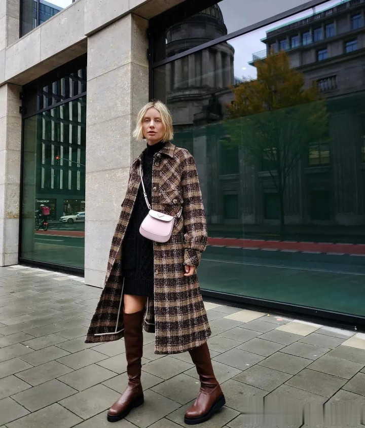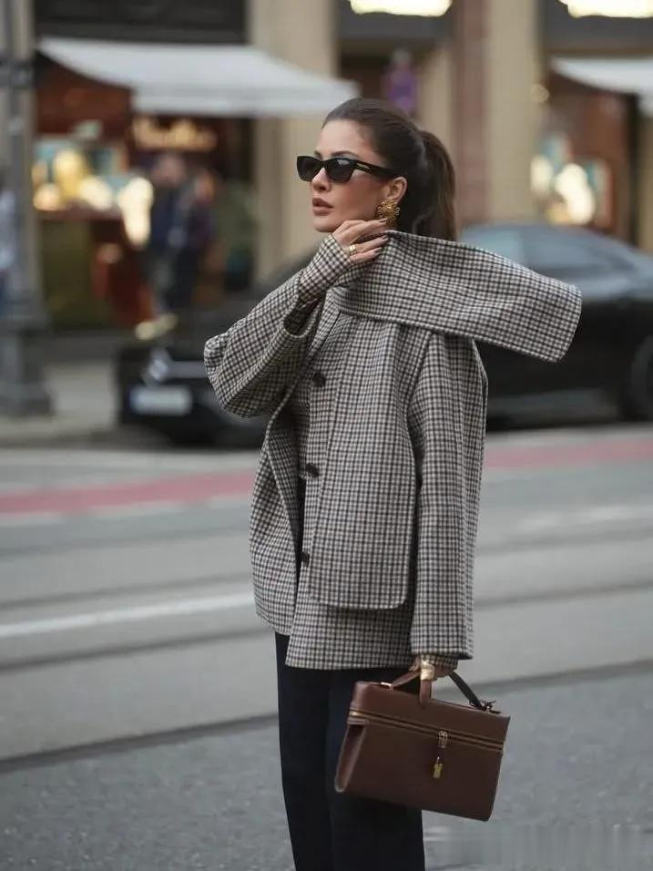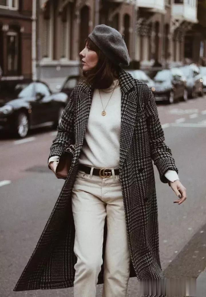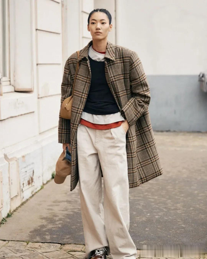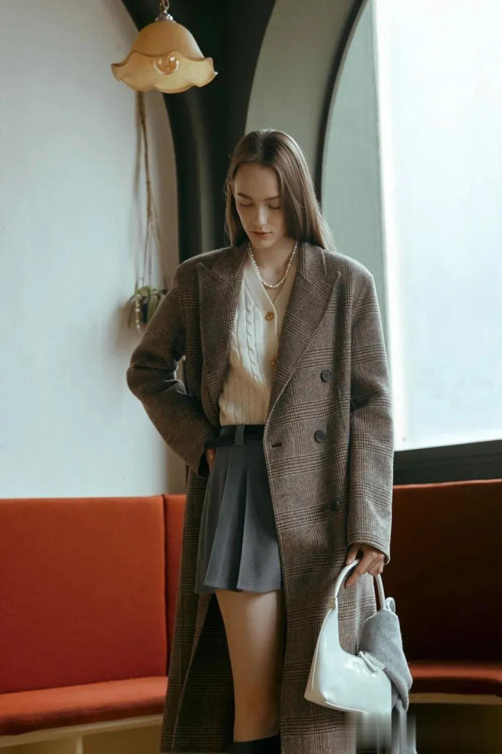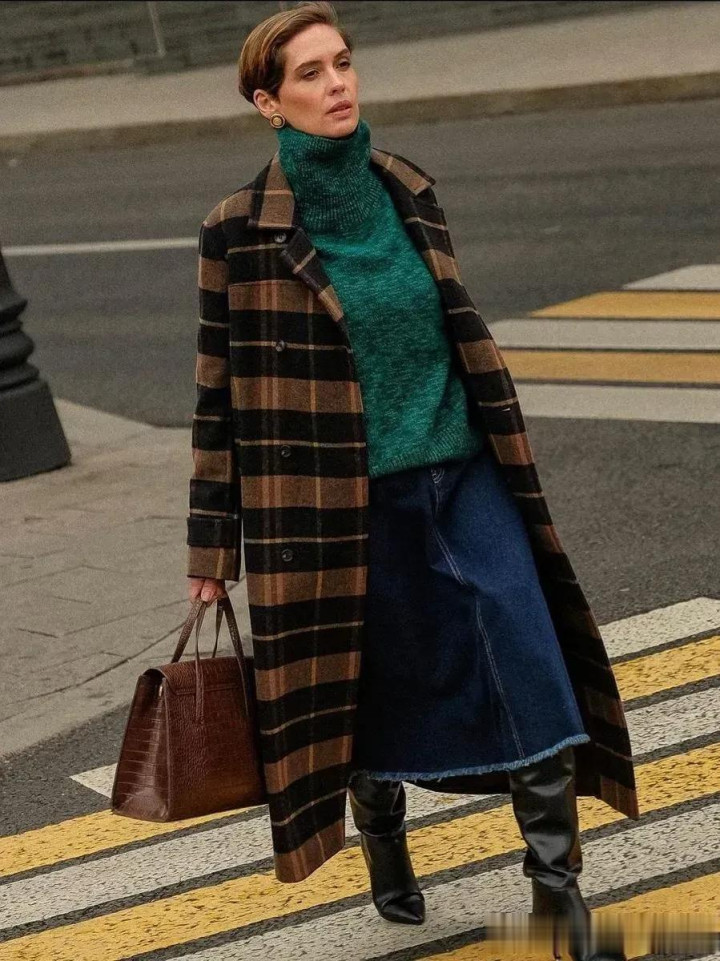 格纹大衣带着一种沉淀的气质美,