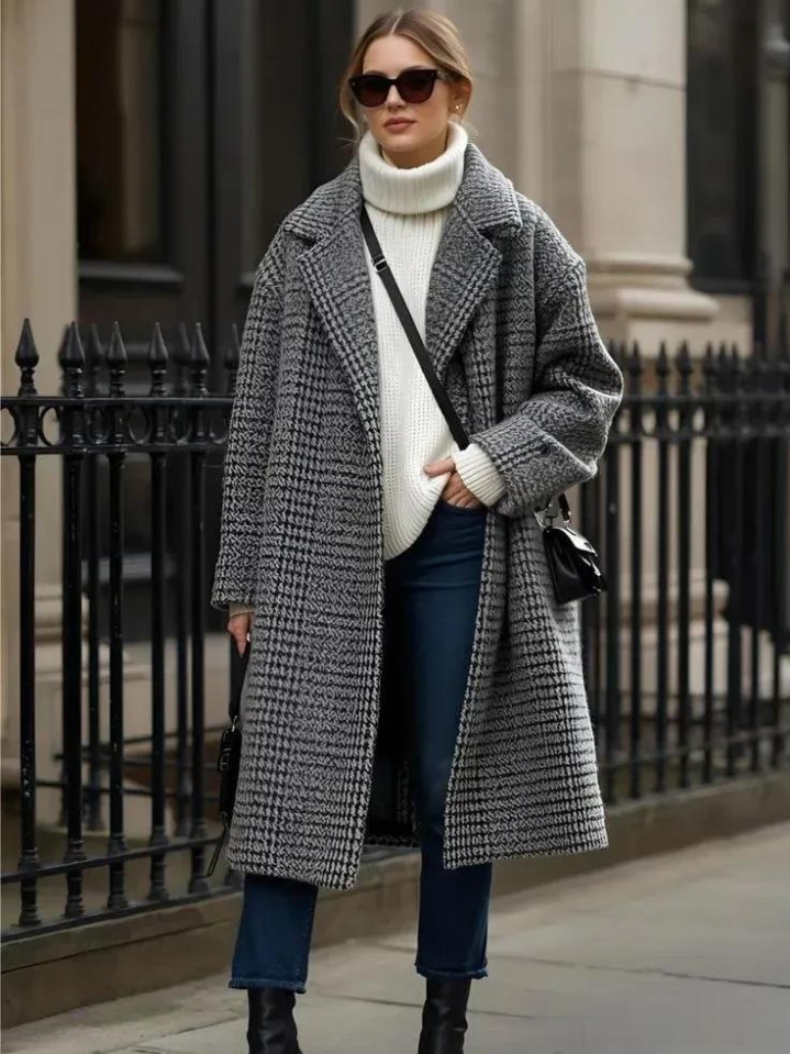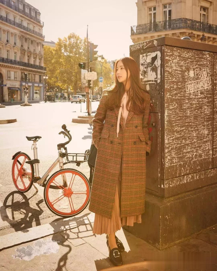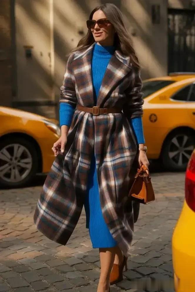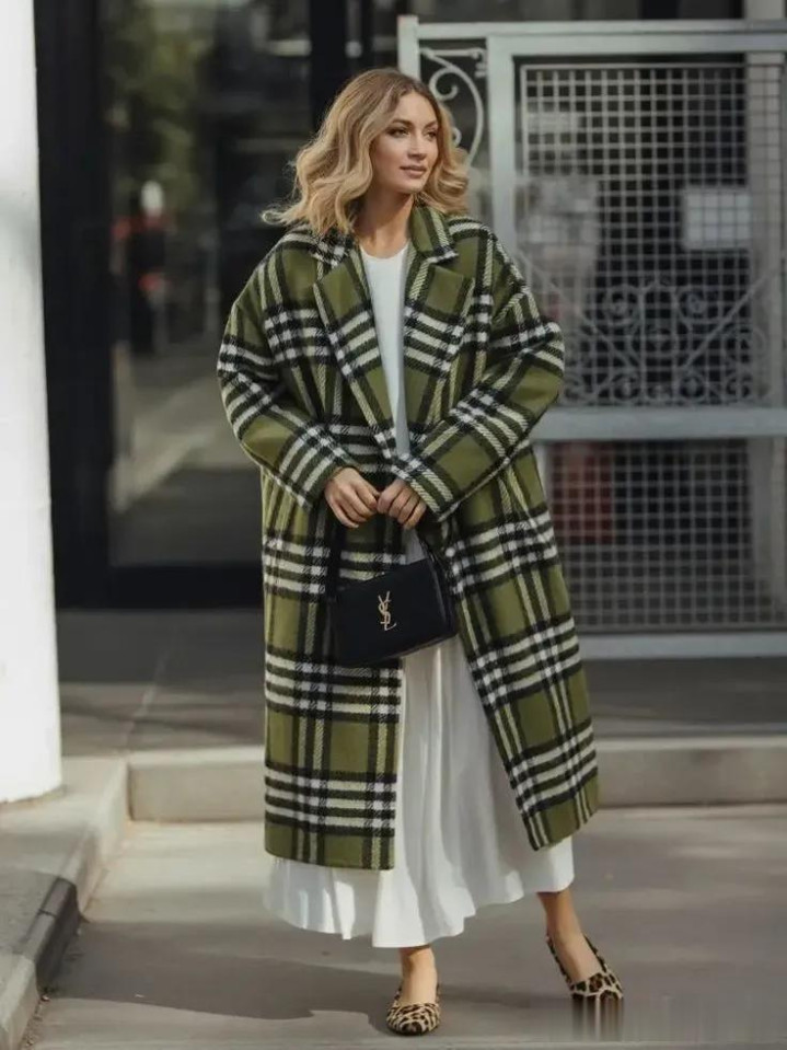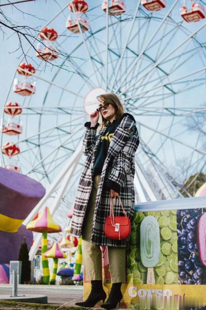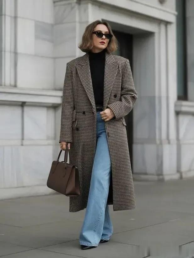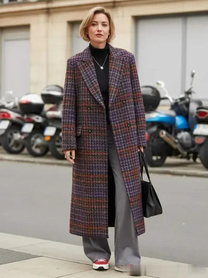 格纹大衣带着一种沉淀的气质美,