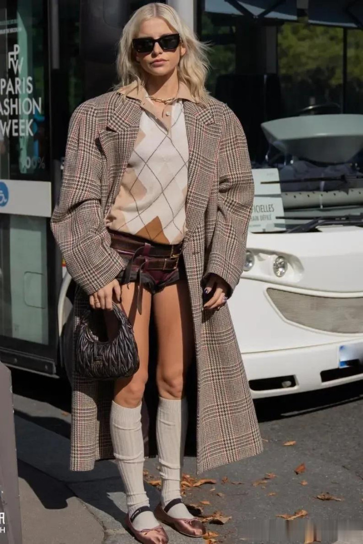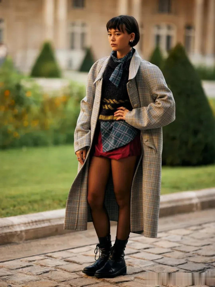 格纹大衣穿搭